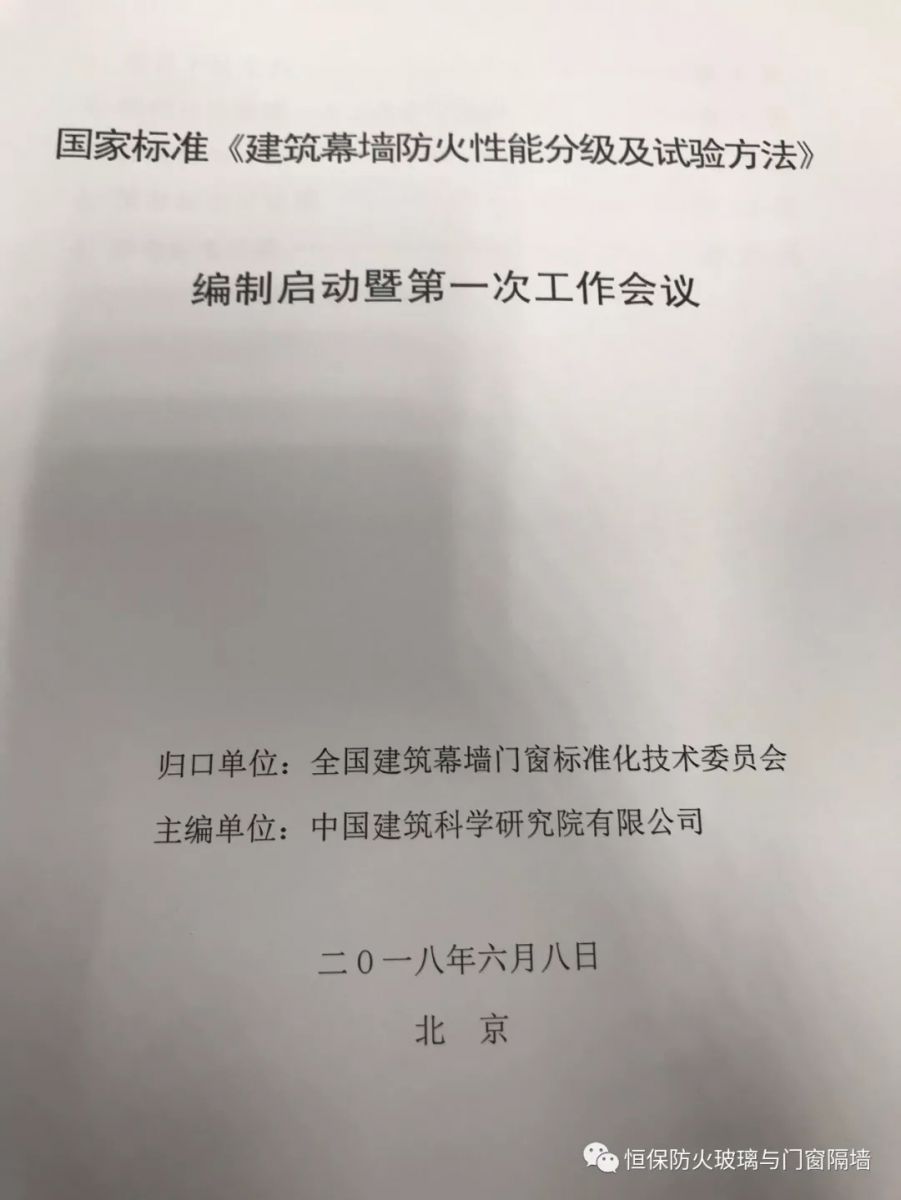 全國建筑幕墻門窗標準化技術(shù)委員會秘書處劉會濤高級工程師代表標委員會宣讀編制組名單,標準編制啟動會圓滿結(jié)束。鶴山恒保陳沃林總經(jīng)理也應邀參加了這次的國家標準編制。
