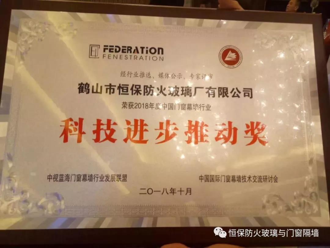 鶴山恒保公司在此次交流研討會(huì)中,獲大會(huì)專(zhuān)家評(píng)審并頒發(fā)2018年度中國(guó)門(mén)窗幕墻行業(yè)“科技進(jìn)步推動(dòng)獎(jiǎng)”。