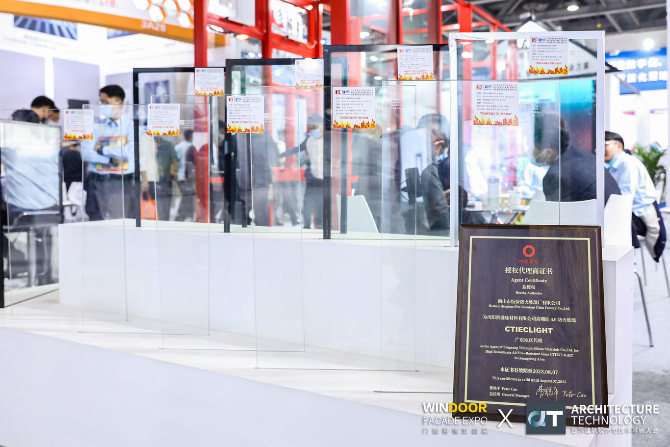 恒保還成為鳳陽(yáng)凱盛高硼硅防火玻璃的廣東代理,在展會(huì)上也有相關(guān)產(chǎn)品的展示,此外還有高應(yīng)力防火玻璃、非隔熱夾層的B類防火玻璃,以及隔熱型的防火玻璃等,隔熱型主要有三款,水晶硅防火玻璃、納米硅防火玻璃,以及復(fù)合灌漿防火玻璃。