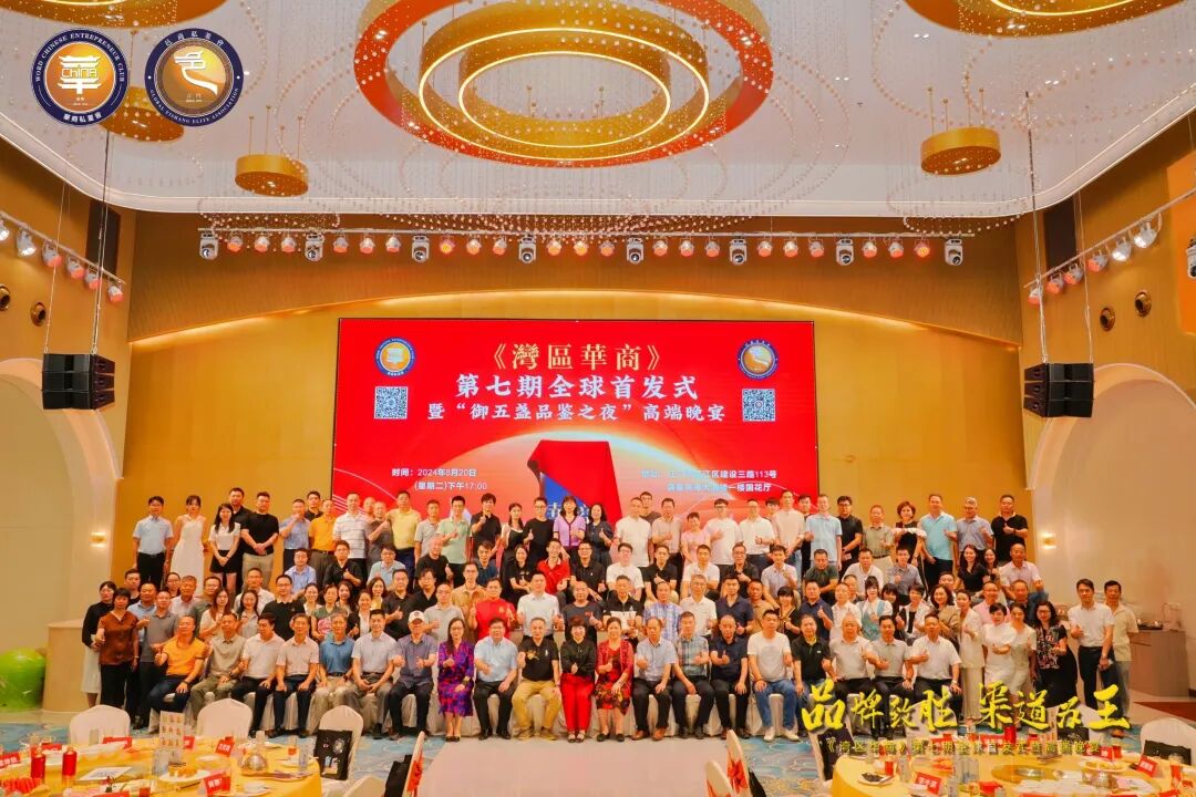 2024年8月20日晚,《灣區華商》第七期全球首發式暨“御五盞品鑒之夜”高端晚宴在僑都江門滿宴京海大酒樓隆重舉行。現場來自灣區各地的大咖云集,其中包括廣東省消防協會代表團、廣東省玻璃行業協會代表團、深圳市建筑門窗幕墻學會代表團以及邑商&華商私董會企業家代表團等近150位嘉賓。大家齊聚一堂,高朋滿座,共同見證這高光時刻,全程高能!